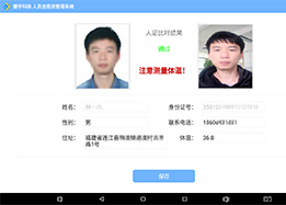 方案背景 受新冠肺炎疫情影響延長春節(jié)假期后,復(fù)工大潮來臨,疫情防治進(jìn)入關(guān)鍵期,全國多地實(shí)施封閉式管理,嚴(yán)格管控人員出入,采取全員登記制度,但目前大部分地區(qū)仍使用人工登記,手寫登記項(xiàng)目繁多,如姓名、電話、體溫、地址等,同時頻繁交叉接觸寫字筆會增加感染風(fēng)險(xiǎn),人工識別身份信息準(zhǔn)確率較低,影響疫情防控工作。 方案介紹 捷宇科技依托多年在圖像視覺與智能交互領(lǐng)域上的技術(shù)積累與優(yōu)勢,針對目前嚴(yán)峻的疫情防控形勢,推出《捷宇科技防疫登記信息管理解決方案》。 該方案由前端采集設(shè)備+后端管理系統(tǒng)組成,通過人臉識別、身份證識別、指紋采集等功能,1秒即可完成核驗(yàn)身份信息,信息采集準(zhǔn)確率高, 核驗(yàn)全程無接觸自動化 ,降低了交叉感染的風(fēng)險(xiǎn)。 結(jié)合第三方測溫儀,支持錄入體溫信息,管理系統(tǒng)自動同步保存人員信息,免去打字錄入,同時可保存每日核驗(yàn)人數(shù),可排查人員是否來自疫情嚴(yán)重地區(qū),若出現(xiàn)體溫異常人員便于查找,減輕一線防疫工作人員的壓力。 方案優(yōu)勢 無接觸 身份核驗(yàn)自動化,全程無接觸,降低感染風(fēng)險(xiǎn) 好管理 支持人員登記信息批量導(dǎo)出與查找,減輕防疫人員工作壓力 多模態(tài) 設(shè)備類型豐富,針對不同場景,多種識別模式可選 高精準(zhǔn) 核驗(yàn)軟件基于深度學(xué)習(xí)開發(fā),準(zhǔn)確率超過99.5% 推薦產(chǎn)品 DC13雙目活體檢測模組 配置300萬寬動態(tài)+130萬紅外雙目活體檢測攝像頭 N1330雙目攝像頭 配置300萬寬動態(tài)+130萬紅外雙目活體檢測攝像頭  支持吸附式、夾持式、三角架式 X2DC雙目身份核驗(yàn)儀 配置雙目活體檢測攝像頭  采用USB接口,即插即用 X3DC雙目身份核驗(yàn)終端 配置雙目活體檢測攝像頭、身份證模塊、指紋模塊 Z10P人證核驗(yàn)終端 配置身份證模塊、指紋模塊、單/雙目攝像頭等 Z10S人證核驗(yàn)終端 配置身份證模塊、指紋模塊、單/雙目攝像頭等 Z20多模塊核驗(yàn)終端 配置單/雙目攝像頭、雙屏異顯異觸、身份證模塊、指紋模塊、二維碼模塊等 M70移動式人證核驗(yàn)終端 配置單/雙目攝像頭、身份證模塊、指紋模塊、電池等